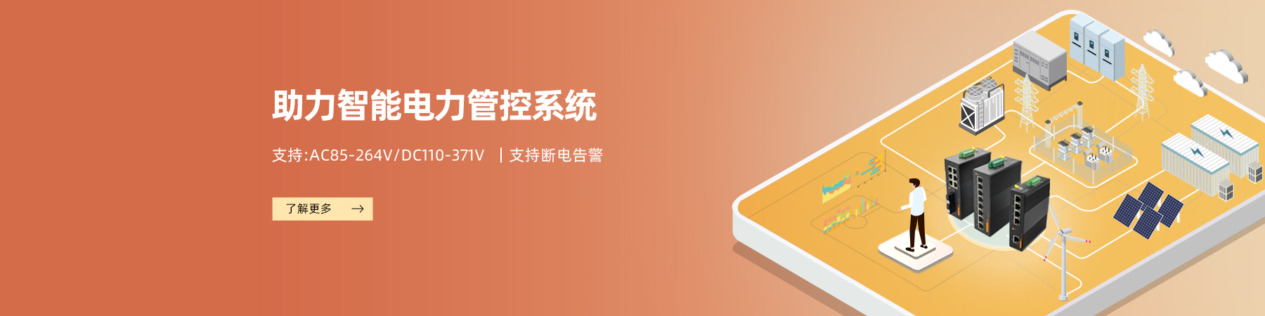 綜合能源為風力發電、太陽能發電等可再生新能源搭建智能監控系統,通過將數據采集和分析、環境監測、視頻監控等傳輸至監控中心,實現監控中心對發電站設備的遠程控制,追求最大化的電力轉化。工業以太網交換機獲得國內外權威機構檢測與認證,設計符合IEC61850和